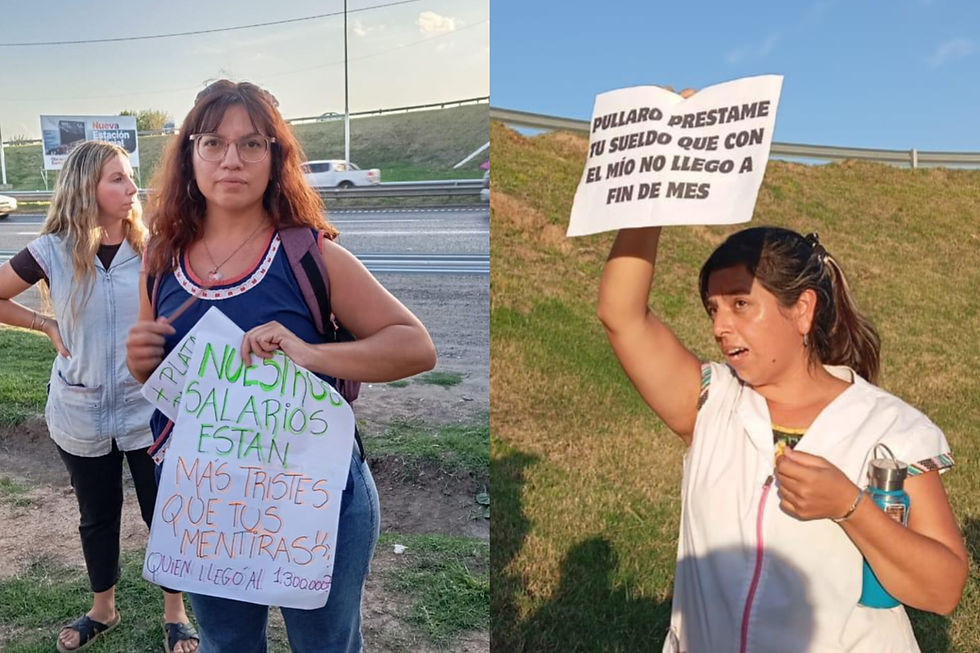 Un grupo autoconvocado de docentes públicos protestó en la tarde de este lunes en el inicio de la autopista Rosario-Santa Fe durante el acto de inauguración del tercer carril que encabezó el gobernador Maximiliano Pullaro.
